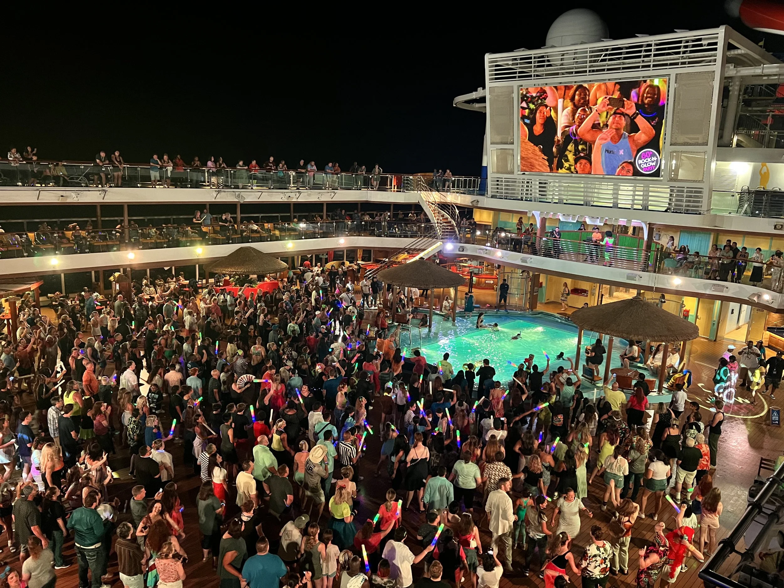 Up on the top decks, you’ll find easy access to the buffet, and you’ve also got a full bar setup out there, so the area lends itself perfectly for a late-night party. If you’re cruising with Carnival in colder weather, or rainy weather, I’m not sure what they would do - perhaps the party would move into the theatre venue last minute? Hopefully they don’t just cancel these - they were brilliant fun!