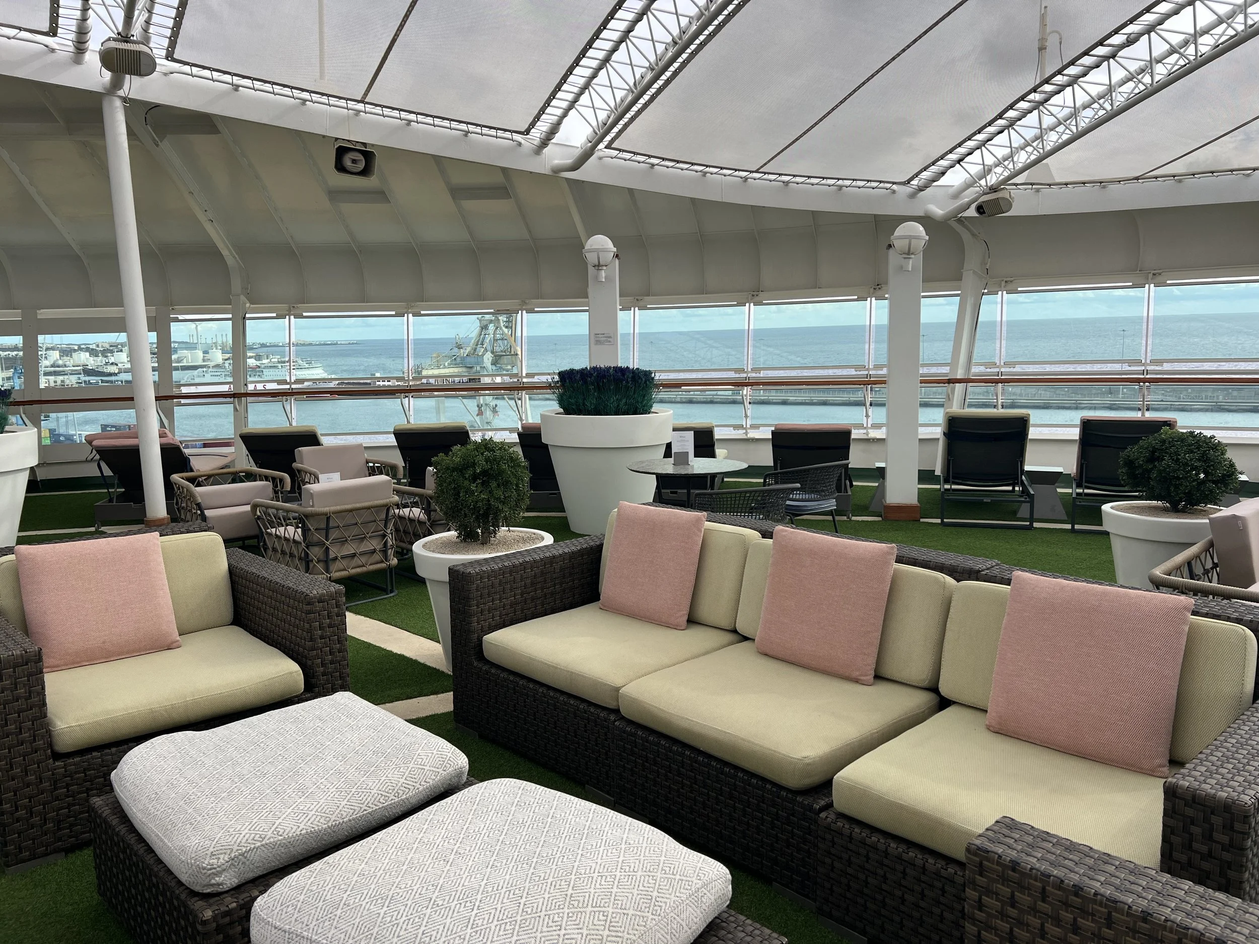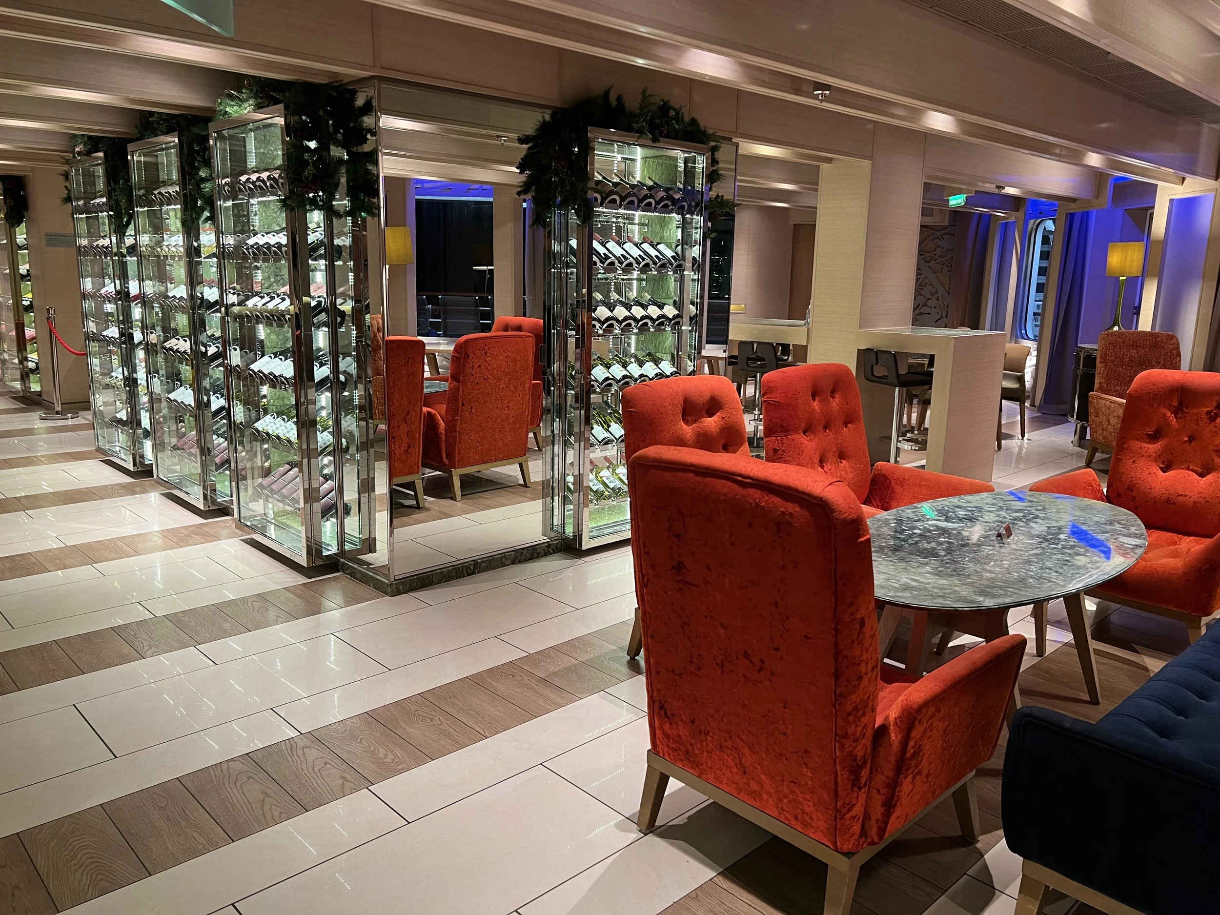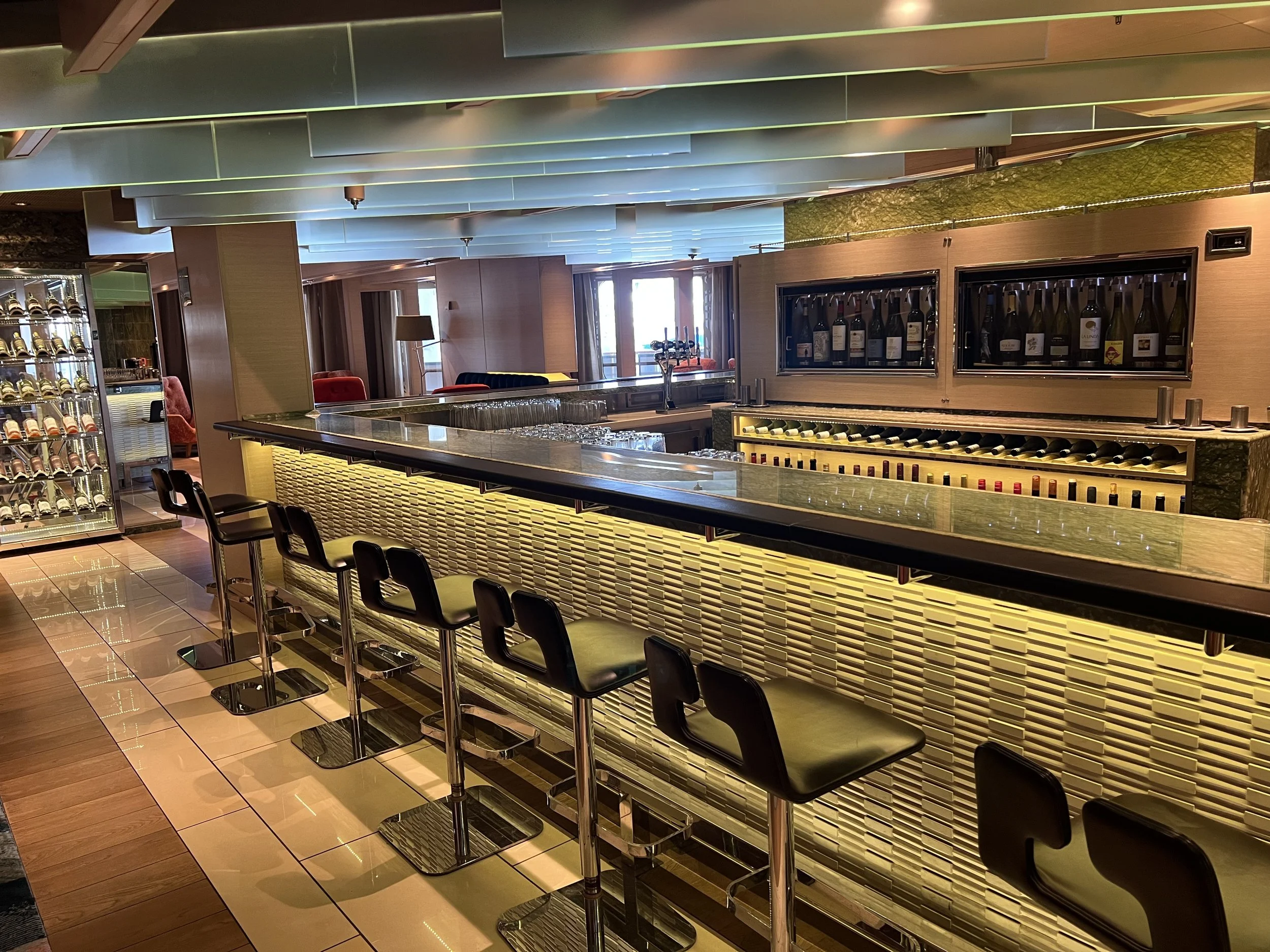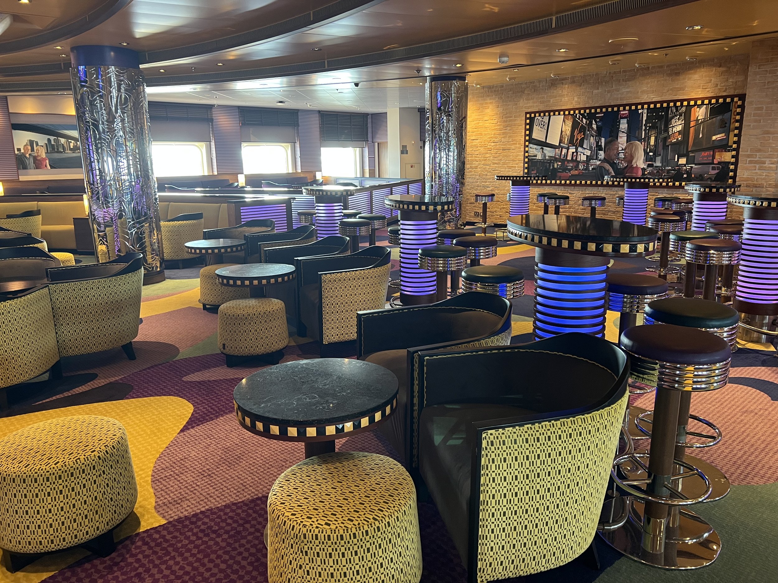This space has changed between my cruises in 2022 and 2025, mostly thanks to the introduction of new lounging furniture and a general refurbishment of the bar itself. The new furniture is so modern, and it really does ‘lift this space’.
