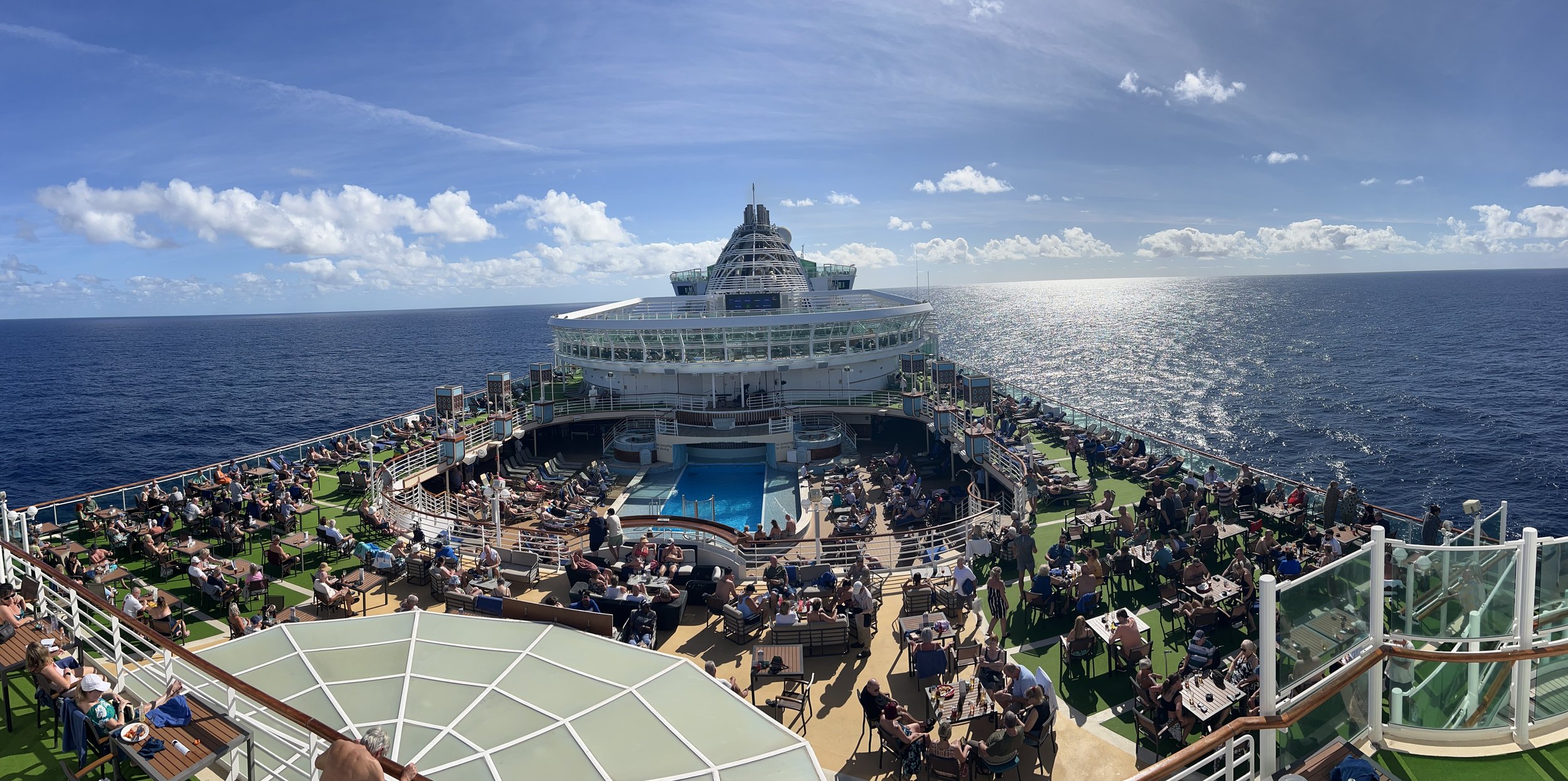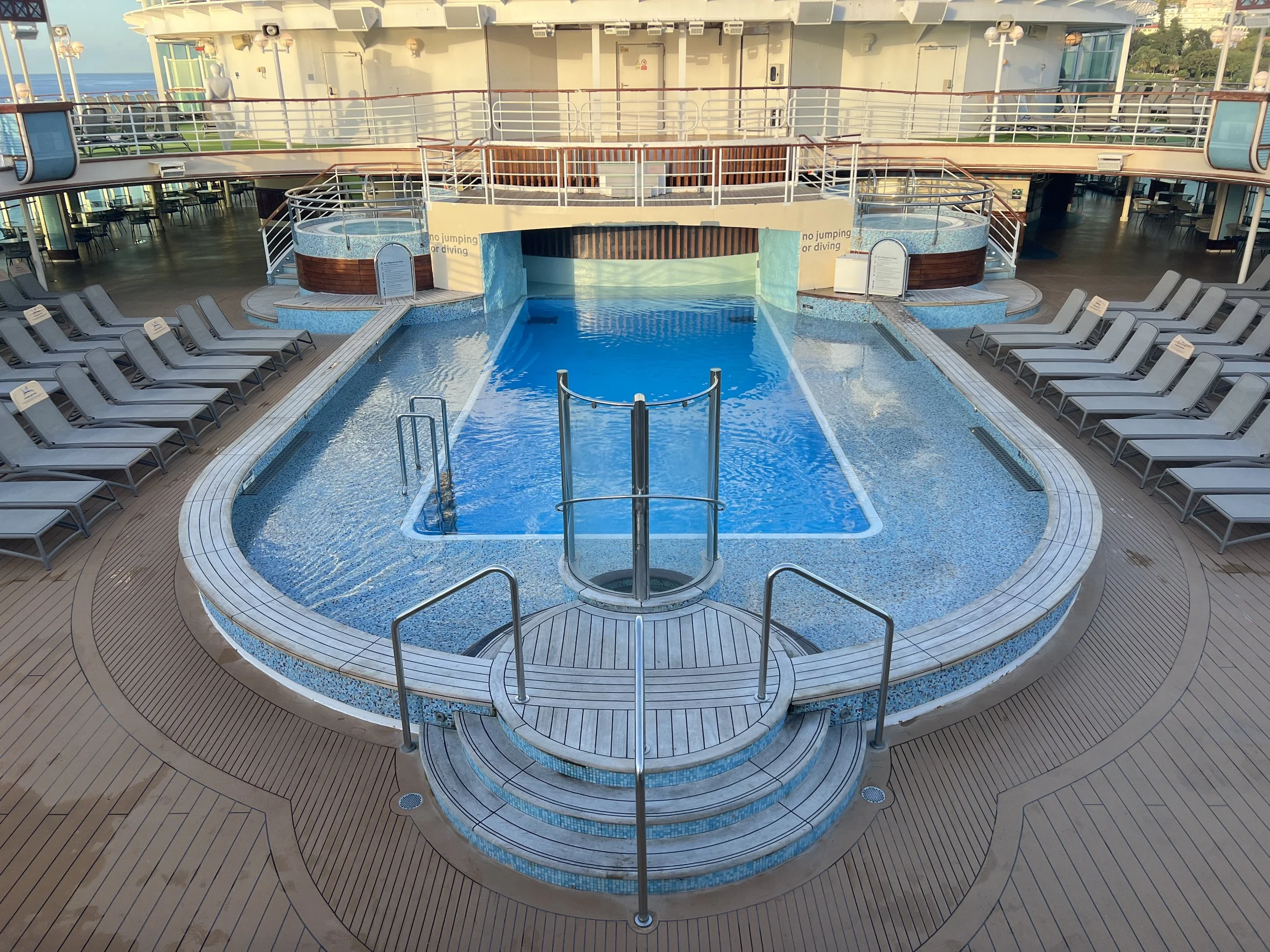The Terrace Pool on Deck 14 is the only swimming pool onboard Azura with no whirlpool hot tubs.