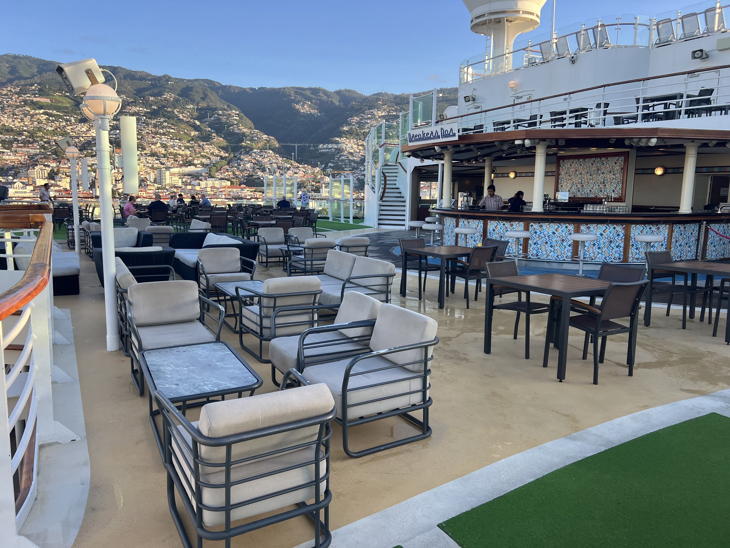 New top deck furniture has been installed as part of the refit. I’ve shown you some examples from Breakers Bar, and I do think that looks really good.