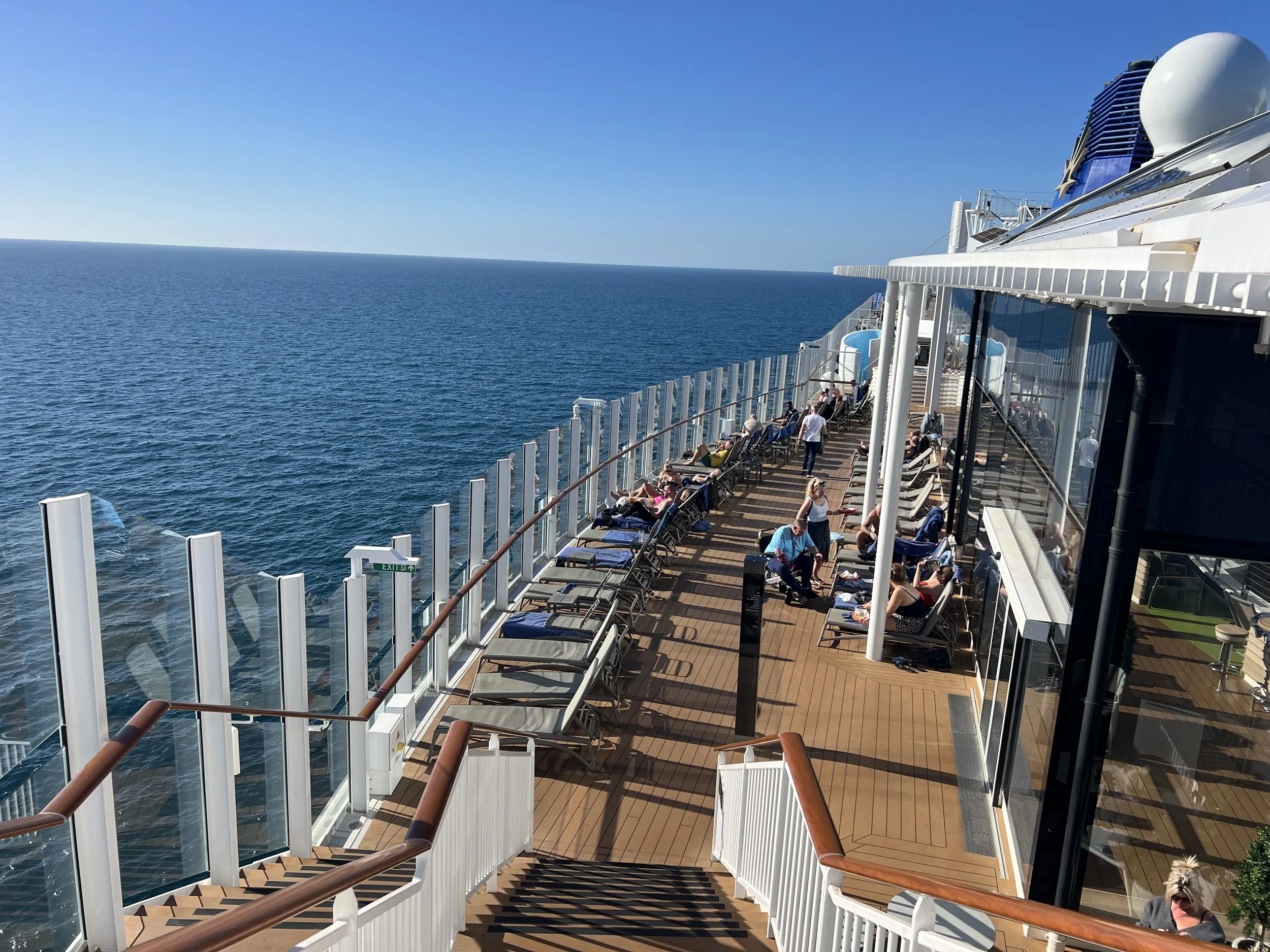 On some cruise ships, I find myself walking around the top deck wondering where on Earth all of the passengers would go in the sunshine. On Arvia, this wasn’t something that I was confused about. There seemed to be loads of deck space, taking in to account both the top deck of the ship and also the fully wrap-around Promenade Deck on Deck 8.
