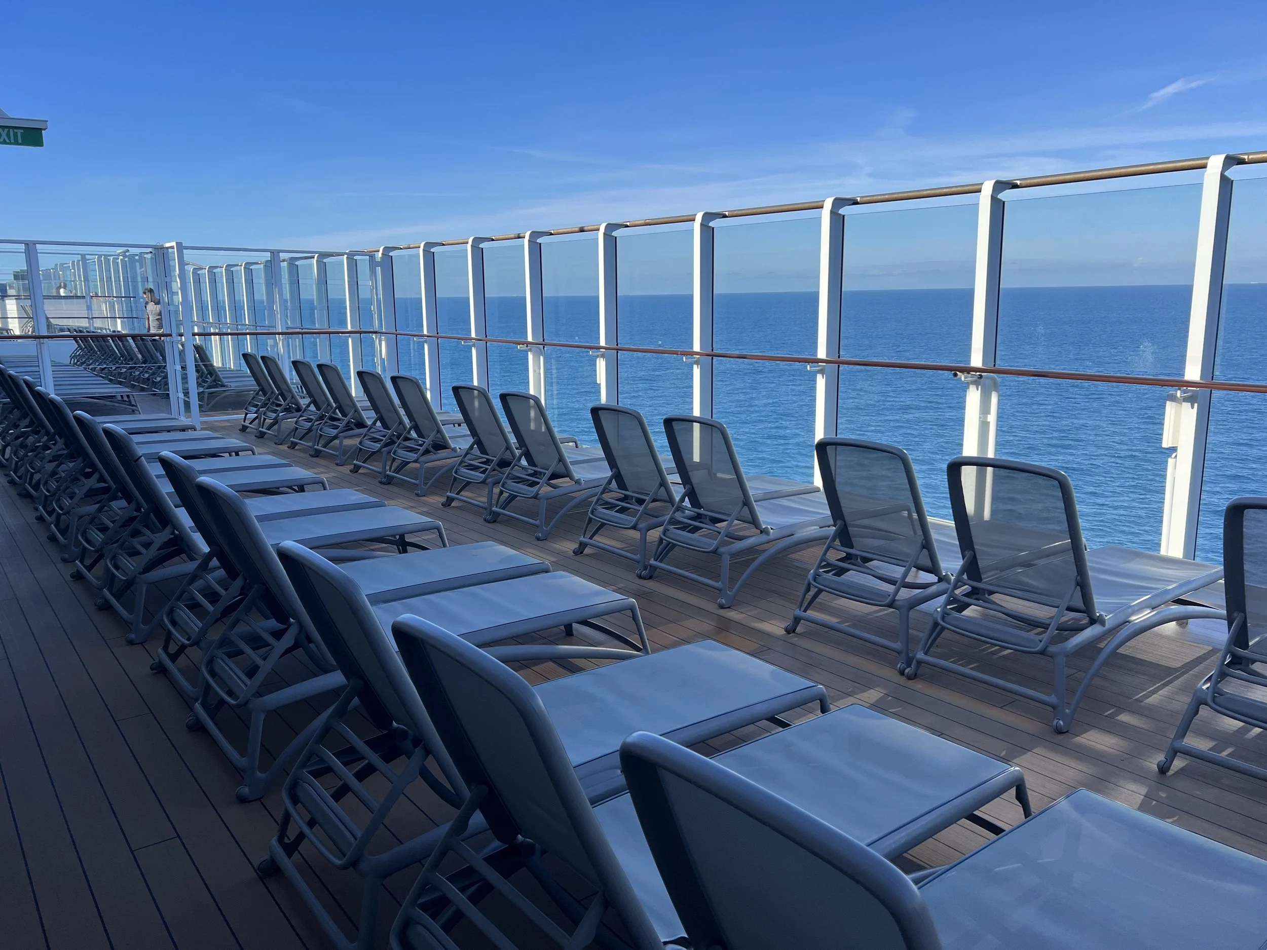 There’s a lot of deck space up here, too. Therefore, if you’ve got a busy sea day ahead, this area might give you the loungers that you’re hoping for…