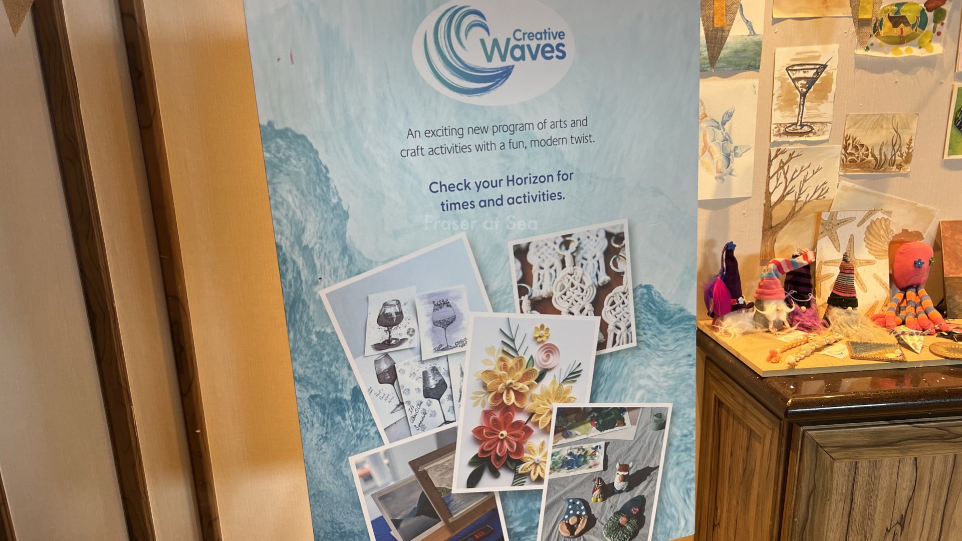 Between the Photo Gallery and the final venue at the back of the ship (which I’ll show you in a second), you’ll find the Creative Waves desk. Here, you can join the team in a wide variety of crafting sessions, which will be announced in the Horizon that’s delivered to your cabin.
