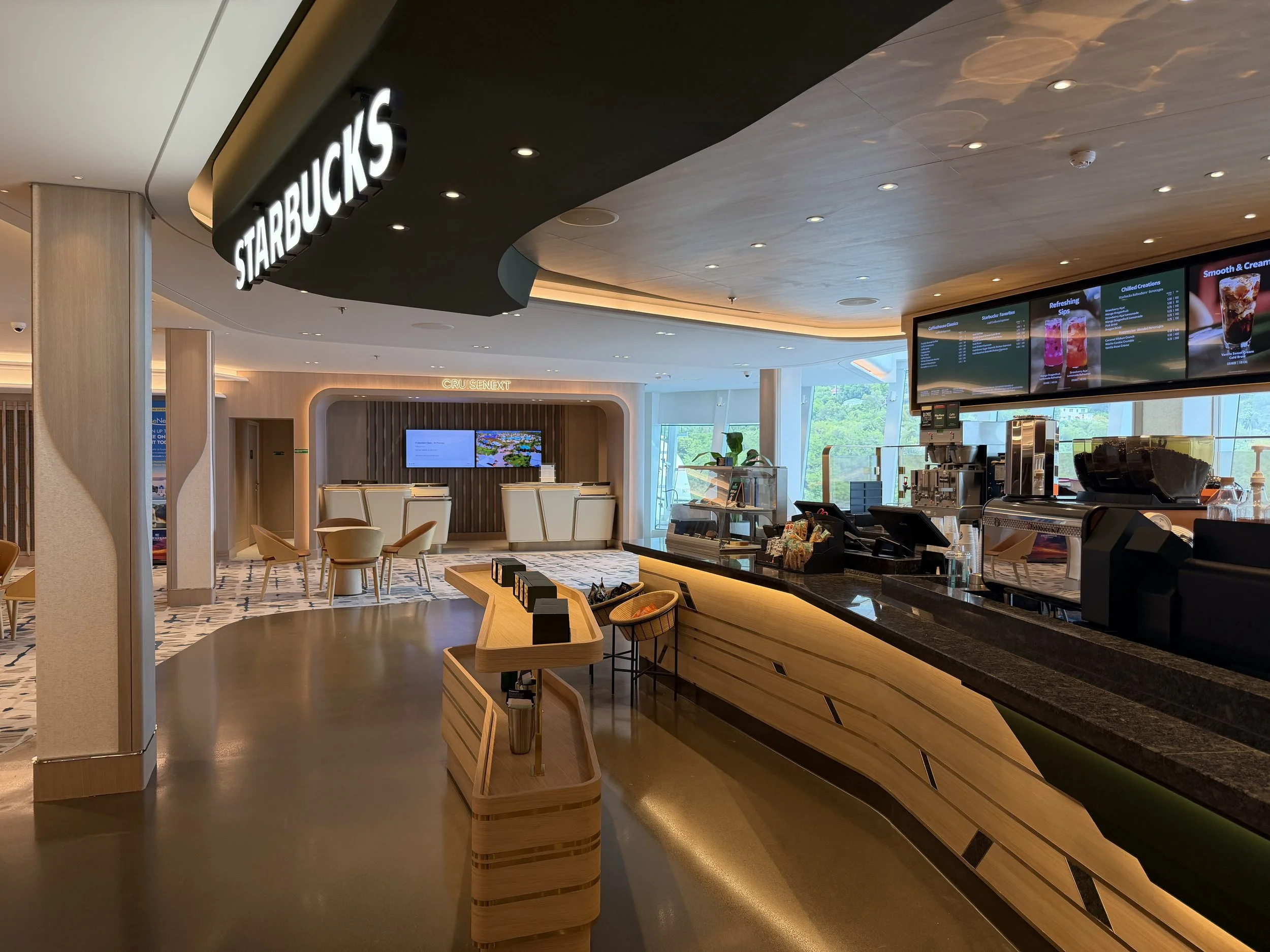 Does this one really need an introduction? You’ll find Starbucks on Deck 7 within the Penrose Atrium, which is where we started our tour earlier. Coffees and snacks here aren’t included in your cruise fare, so you will need to pay a little extra to enjoy anything from here.