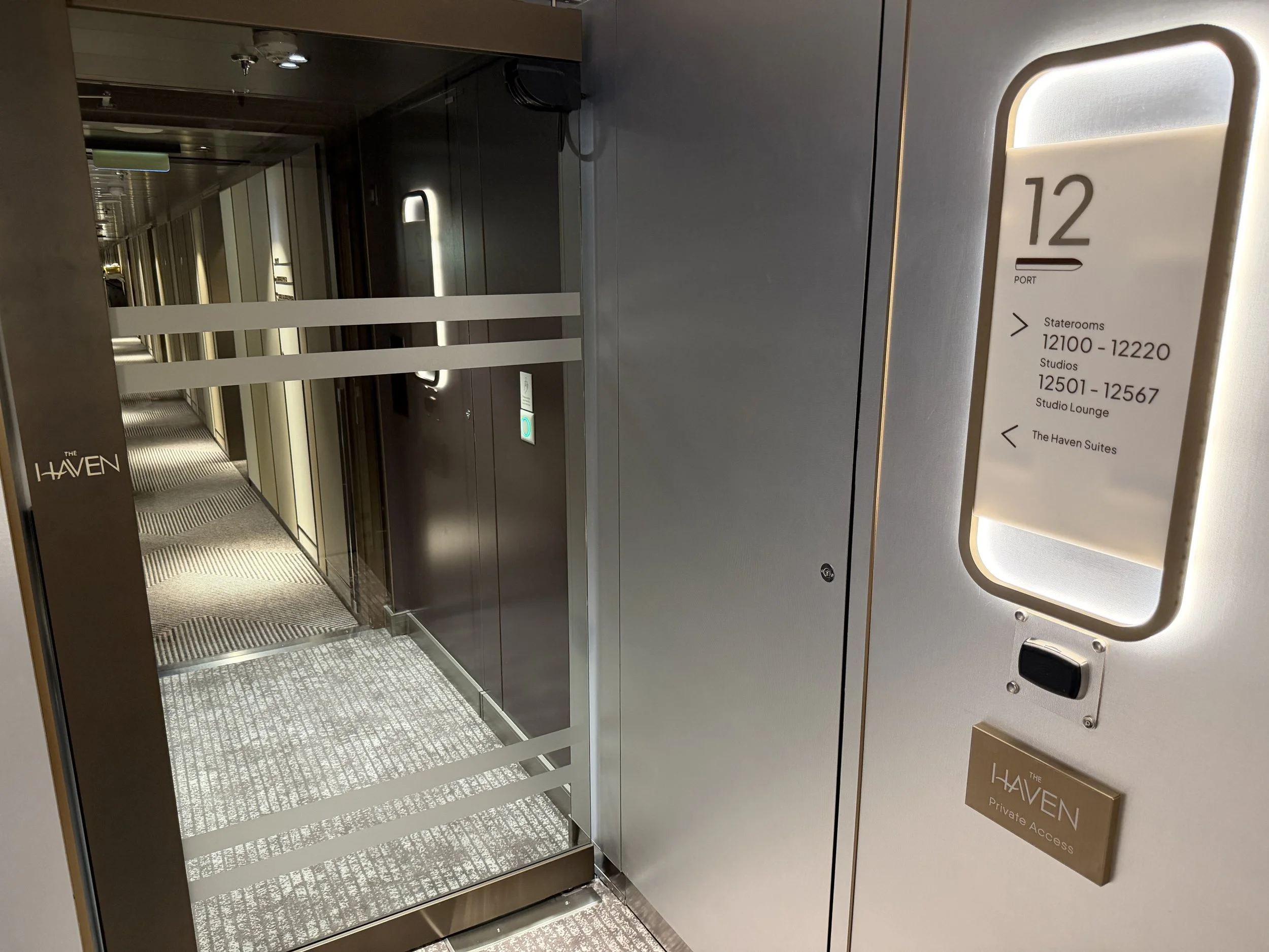 Most of the Haven’s facilities are found on Deck 16, but you’ll find that multiple of the decks are closed off at the back by entrances like the below, as the suites are located on the decks below these facilities.