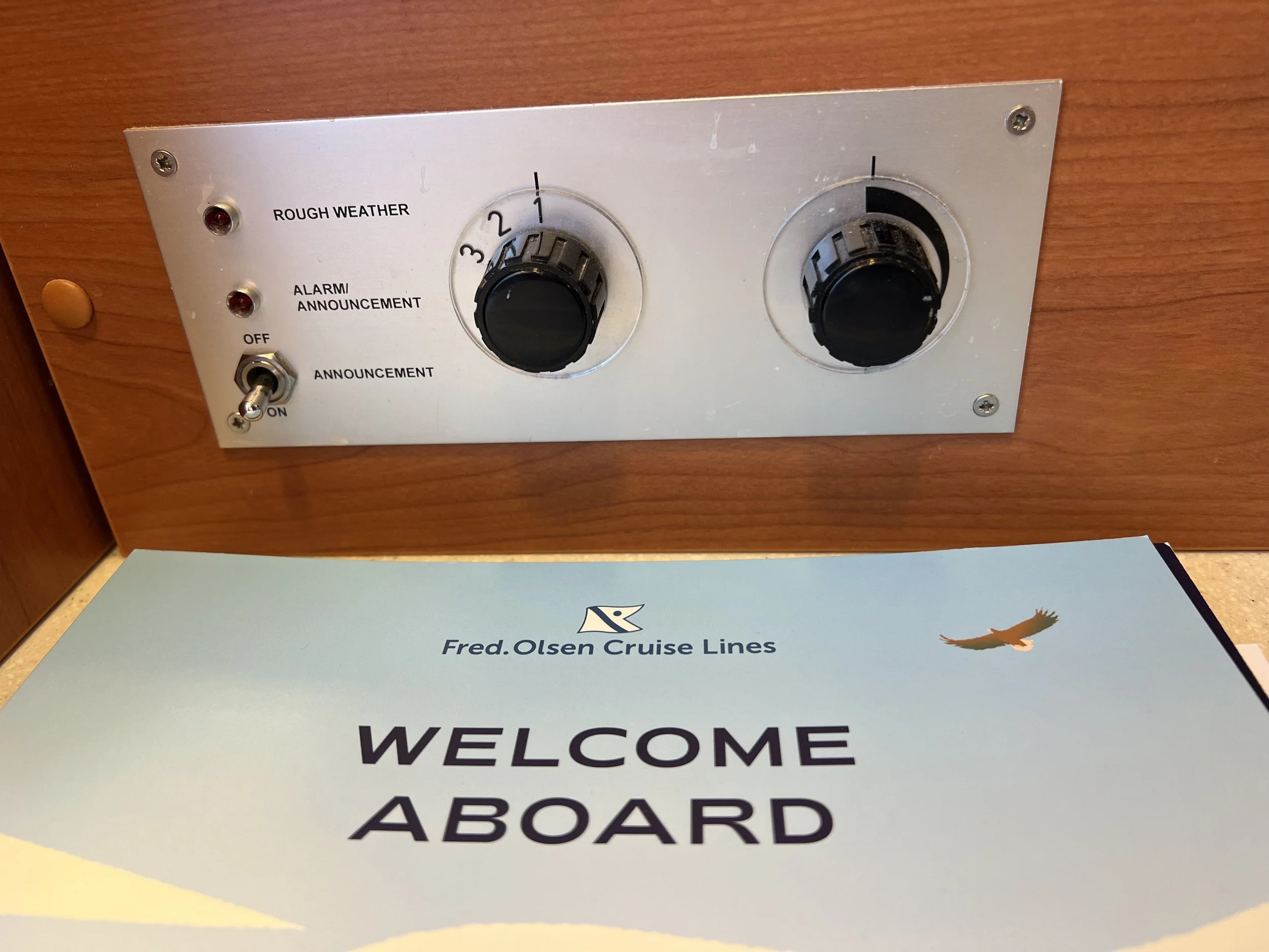 This little control panel was attached to the desk, and I absolutely loved it - it was SUCH a great nod to the age of the ship. Using this panel, passengers are able to control the volume of any announcements coming into the cabin, and also which channel should be listened to.