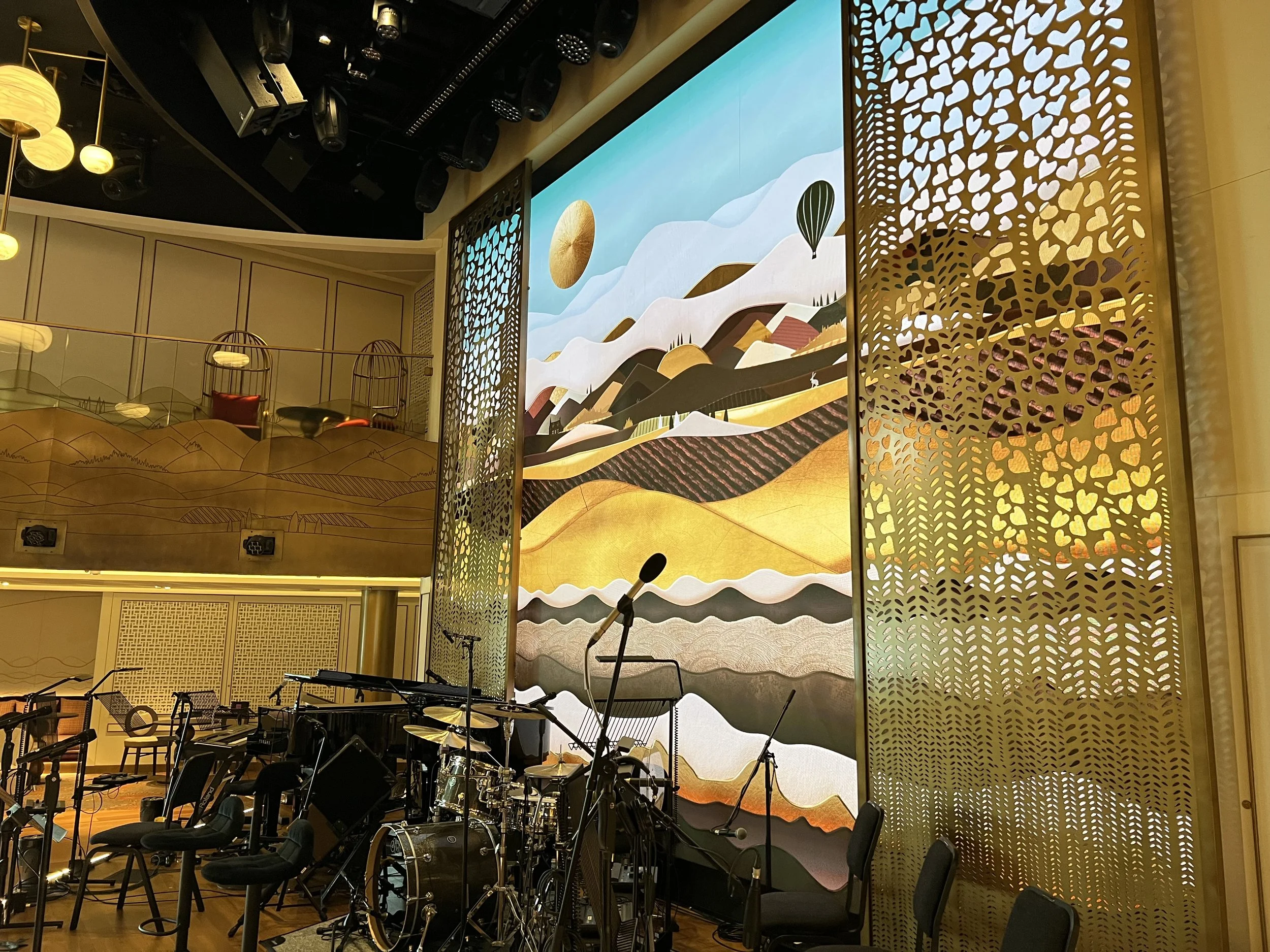 The Queen’s Room on Queen Anne spans both decks two and three, with the main dance floor, stage and bar area being on deck two and a mezzanine seating area up on deck three. In all honesty, I can understand why some people don’t like this compared to the rest of the fleet, but I personally thought it was super refreshing to see a cruise line like Cunard trying to do something completely new on this ship!