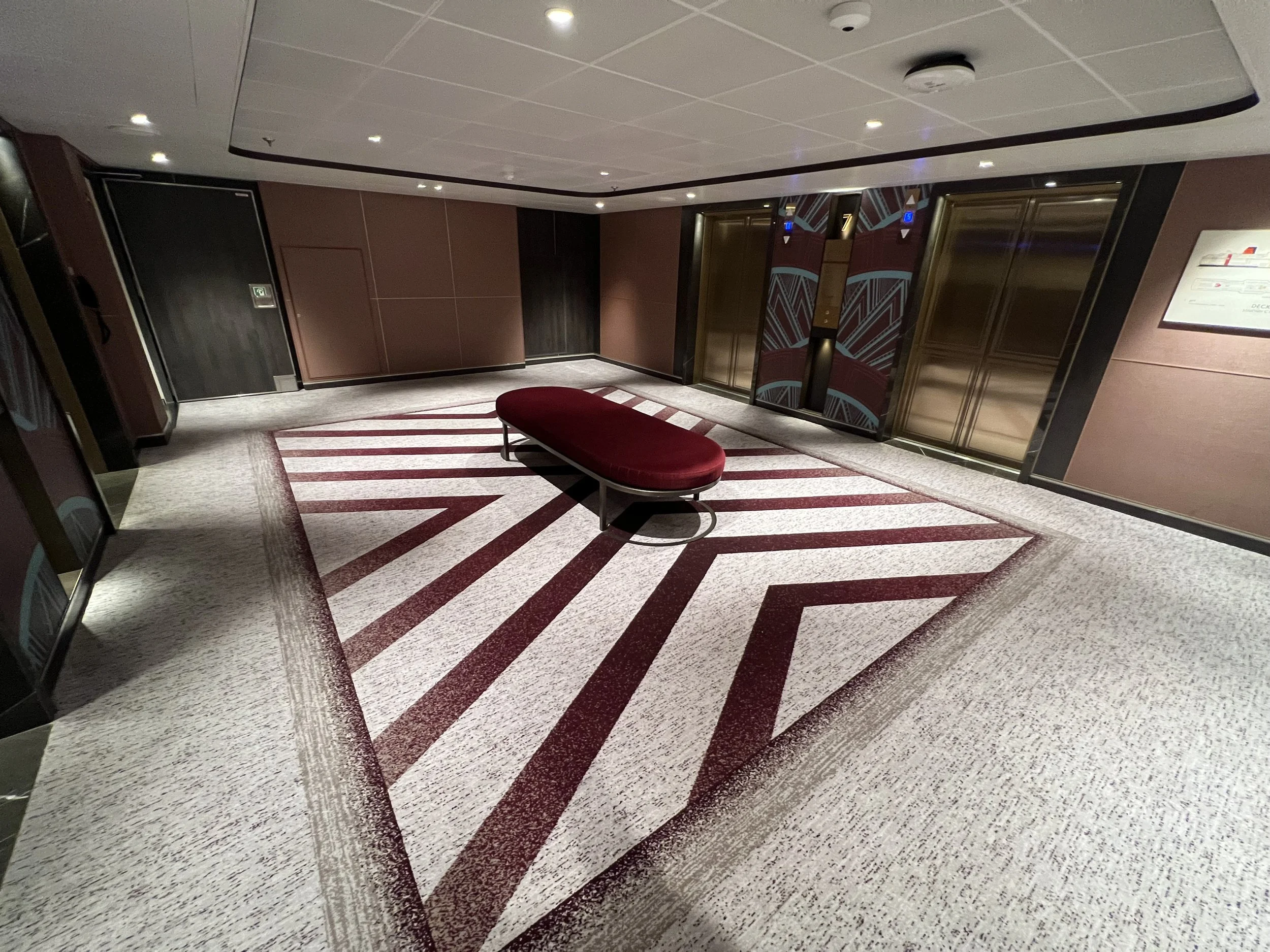 Here’s the red elevator lobby, which you’ll find towards the Aft (back) of the ship. Clever, isn’t it?