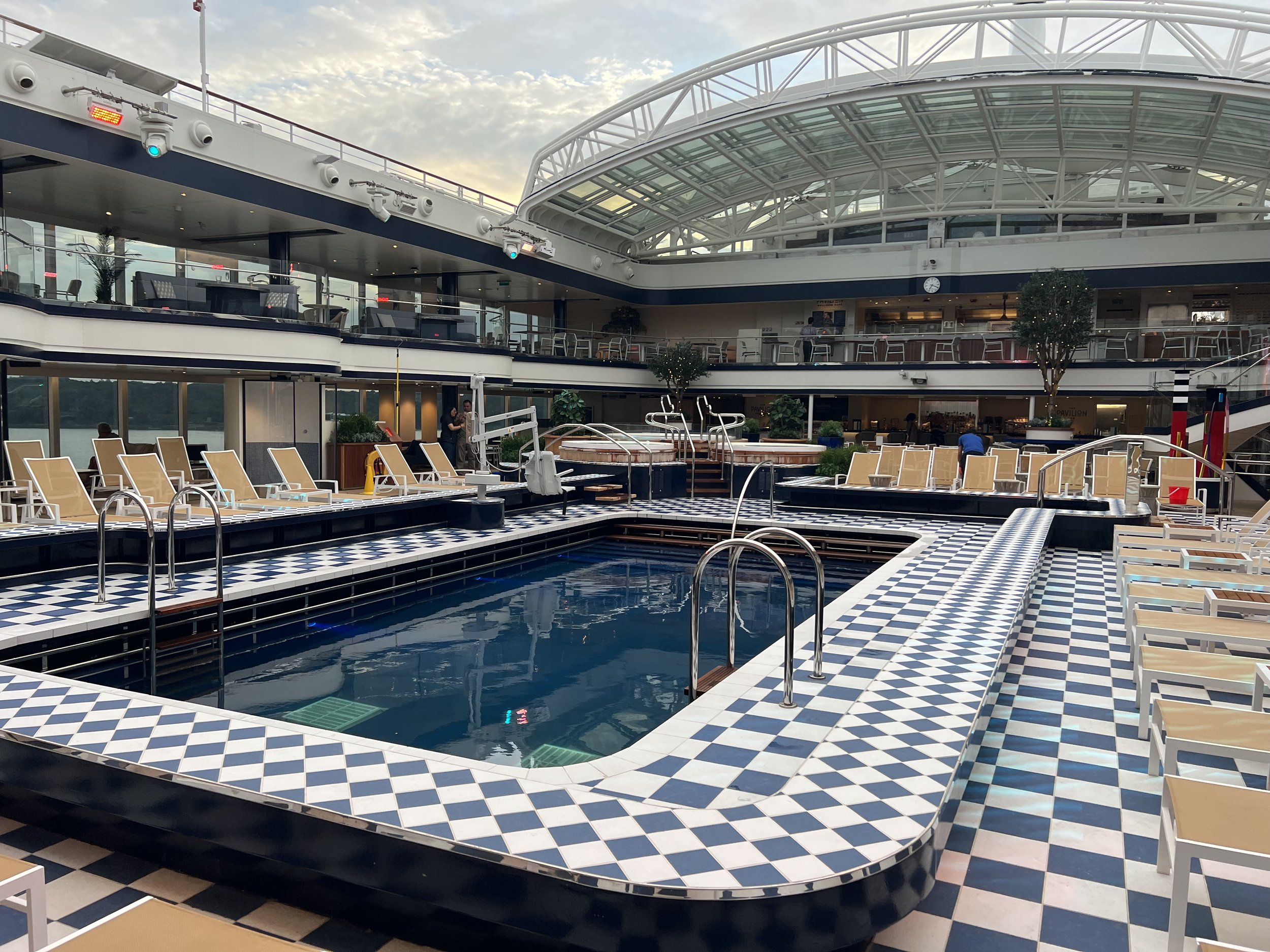 The Pavilion is where you’ll find the primary pool onboard Queen Anne. It’s quite a feast for the eyes!
