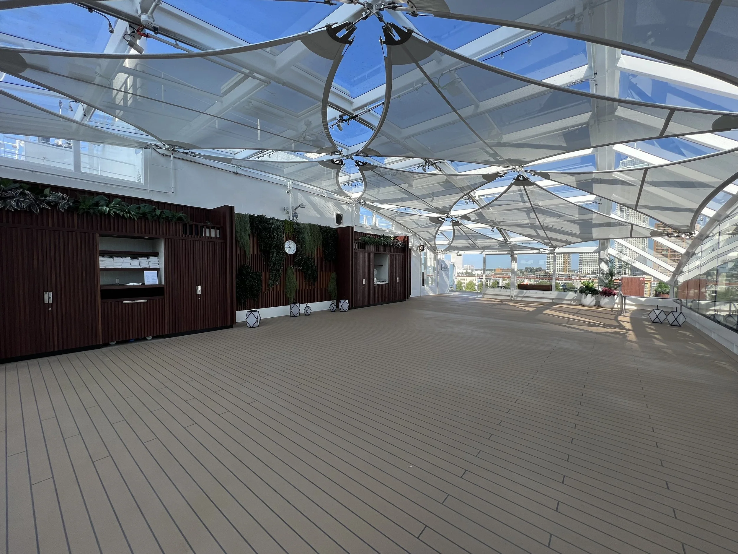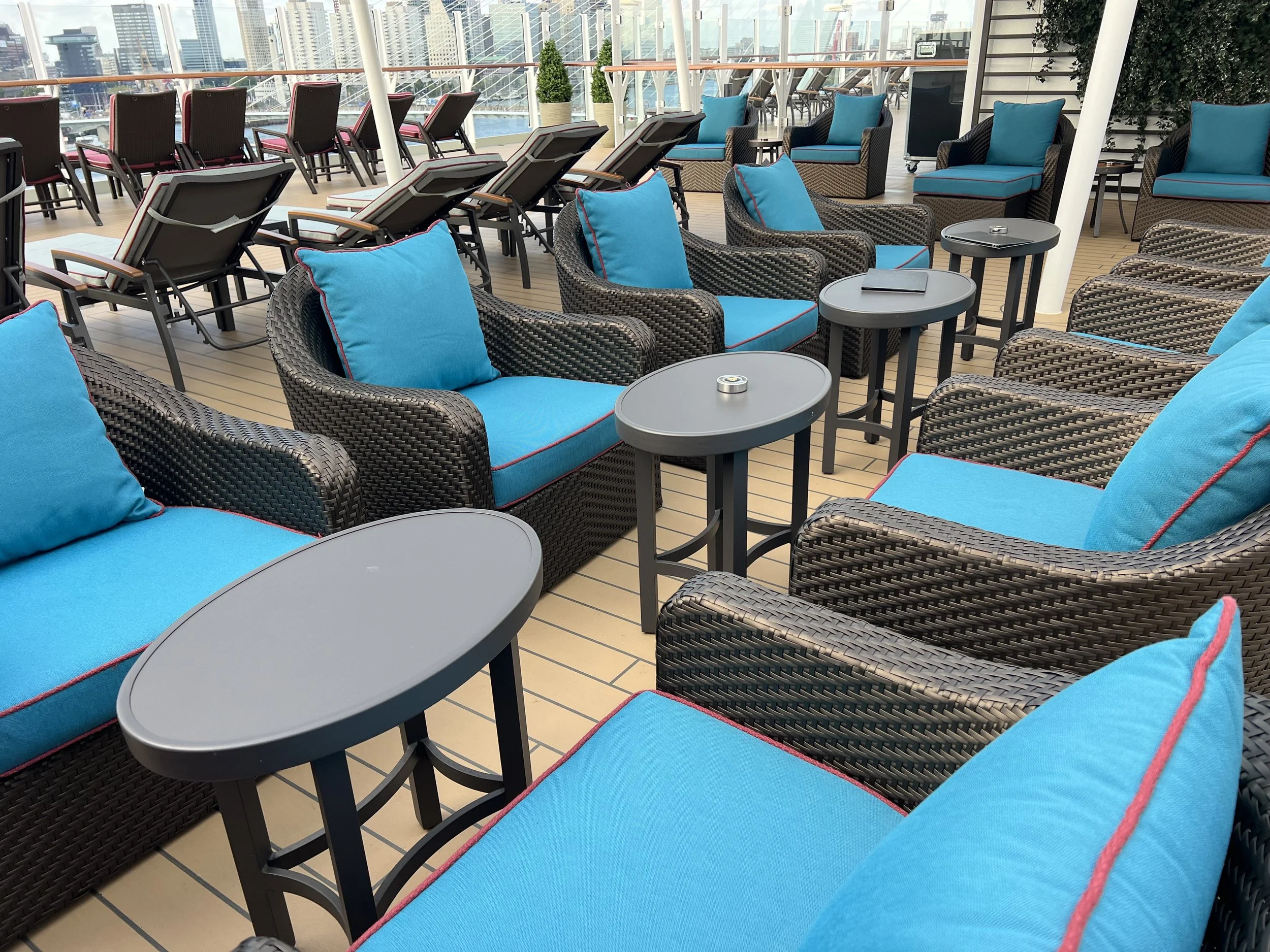 Instead of this locked off ‘suite guest only’ area, this space on Rotterdam was taken up by a sports court and general deck space, which most people used for walking during the cruise. Their ‘premium’ locked-off area is then found at the front of the ship on deck 12, out of the way of the main ship thoroughfare.