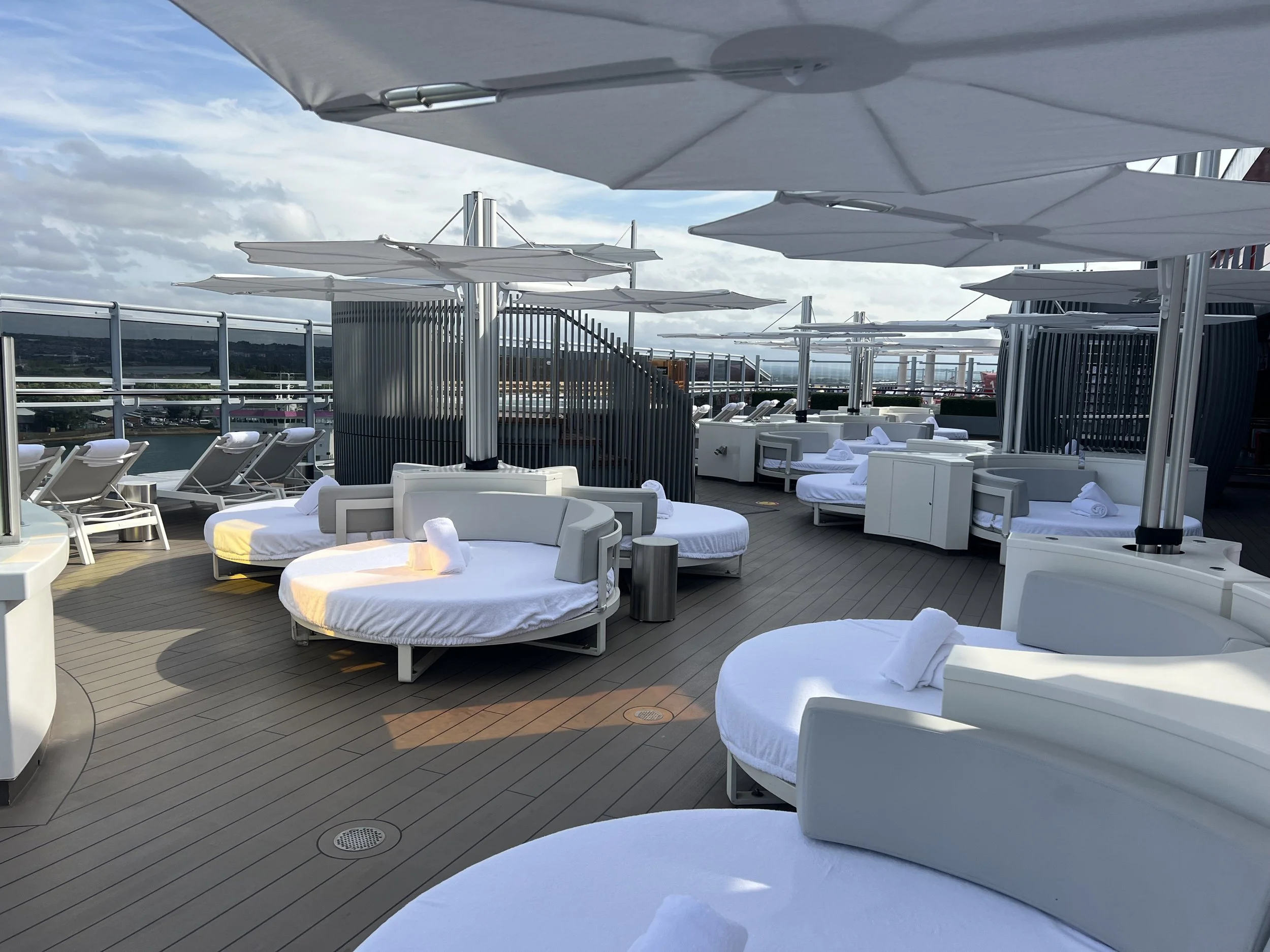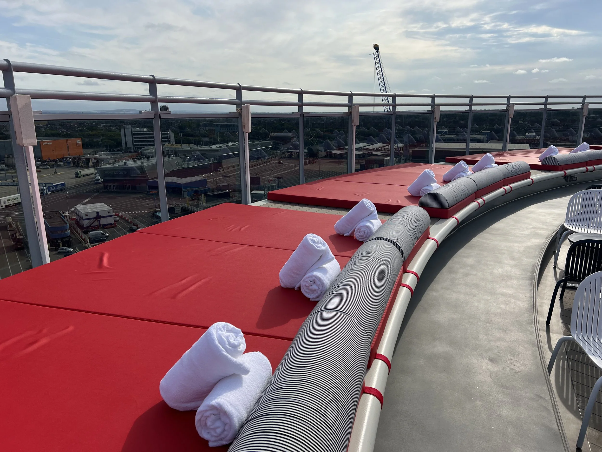 First, let me show you around Richard’s Rooftop. This is a private sundeck at the very front of the ship, reserved for those with ‘Rockstar’ status. In other words, if you’re booked into one of the top suites onboard, then you can look forward to sunbathing and relaxing in here. I’ve never been in here before on any of my past cruises, as I’ve never stayed in a suite before. Spoiler alert - I was really impressed!