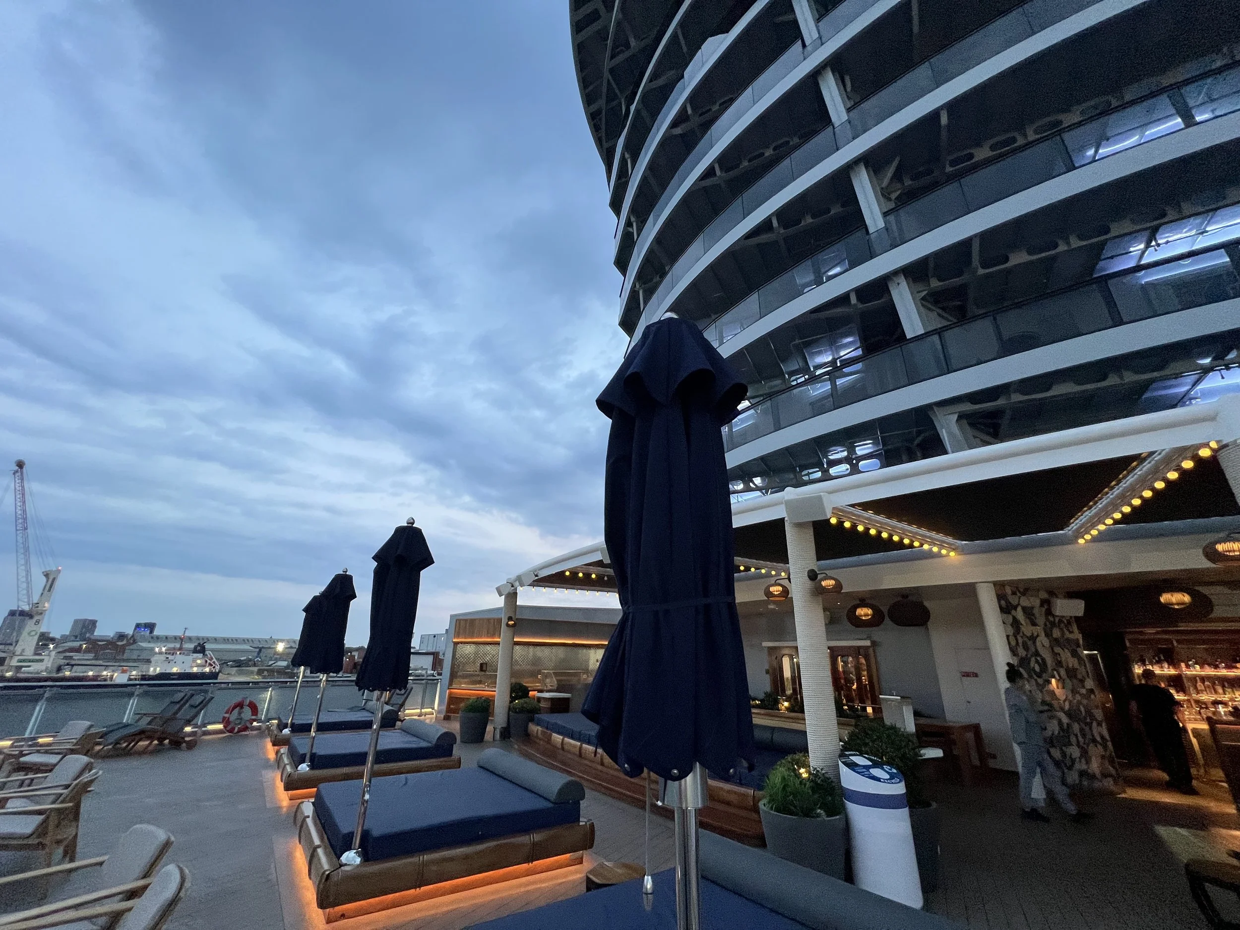After the show, Mum and I went exploring the outside deck spaces before it got fully dark out there. Here’s a few photos to give you a feel for the spaces out there - if you’ve been on any other Virgin Voyages cruise ship, these areas will probably feel pretty familiar to you!