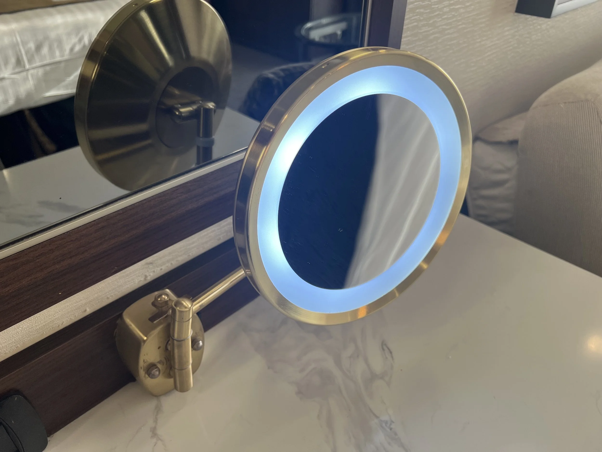 This room couldn’t have been much more perfect for me to share with my friend. We each had a desk each, with the sofa then being communal opposite the bed. Only one of the desks is equipped with a make up mirror, which meant it was an easy choice which would be mine (to confirm, the one without…!). On this point, it was great to see that little touches like the make up mirror were fully lit by the desk - this got a big thumbs up, although admittedly I never benefitted from this during the cruise…!