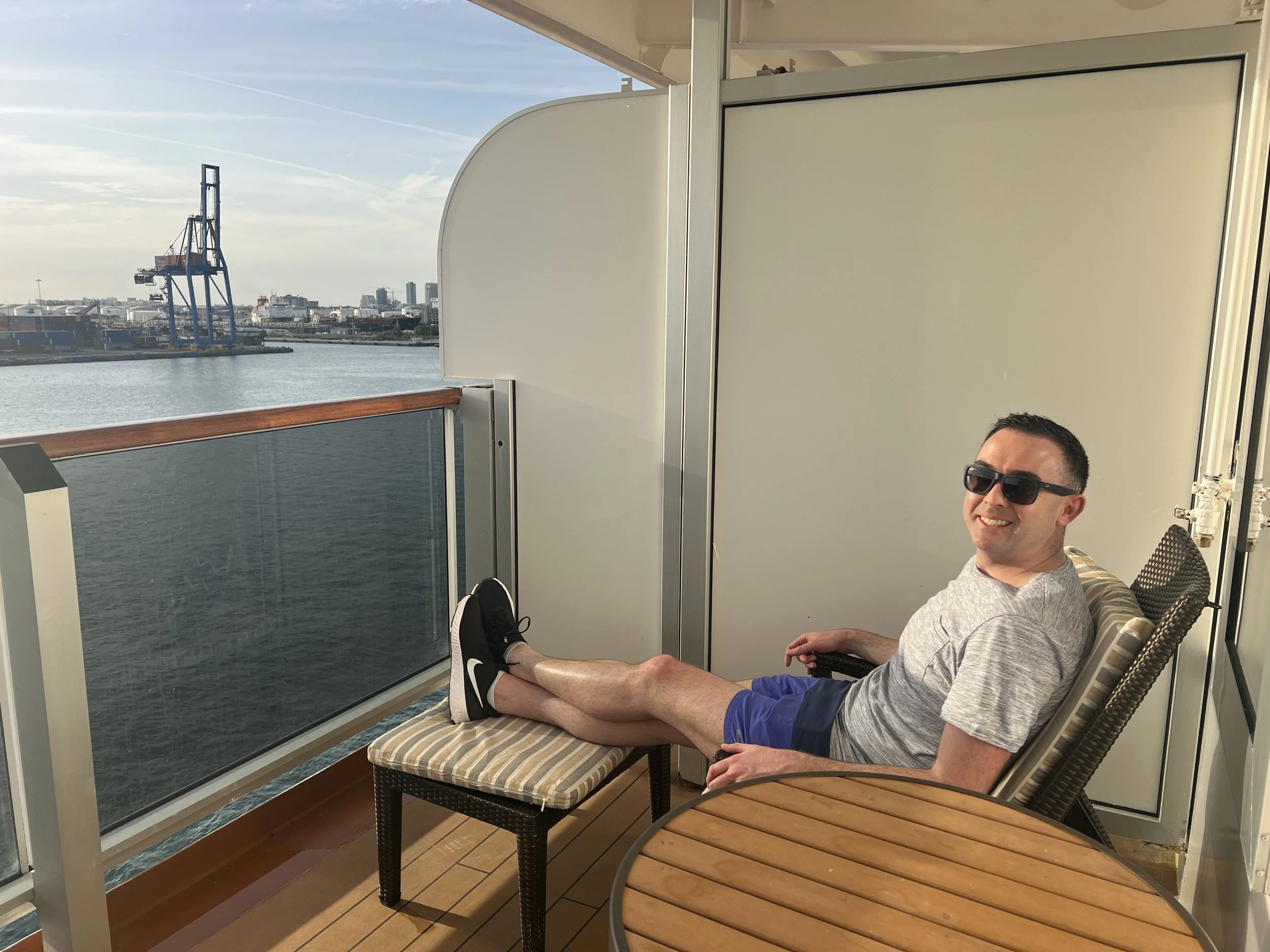 Our balcony was much deeper and wider than those in the regular Verandah staterooms elsewhere on the ship. We had two rattan reclining chairs (with small footstools) out there, which offered us some wonderfully private sunbathing space during the day. There was also a relatively large table, which was perfect for room service lunches during our ‘sea days’ - bliss!
