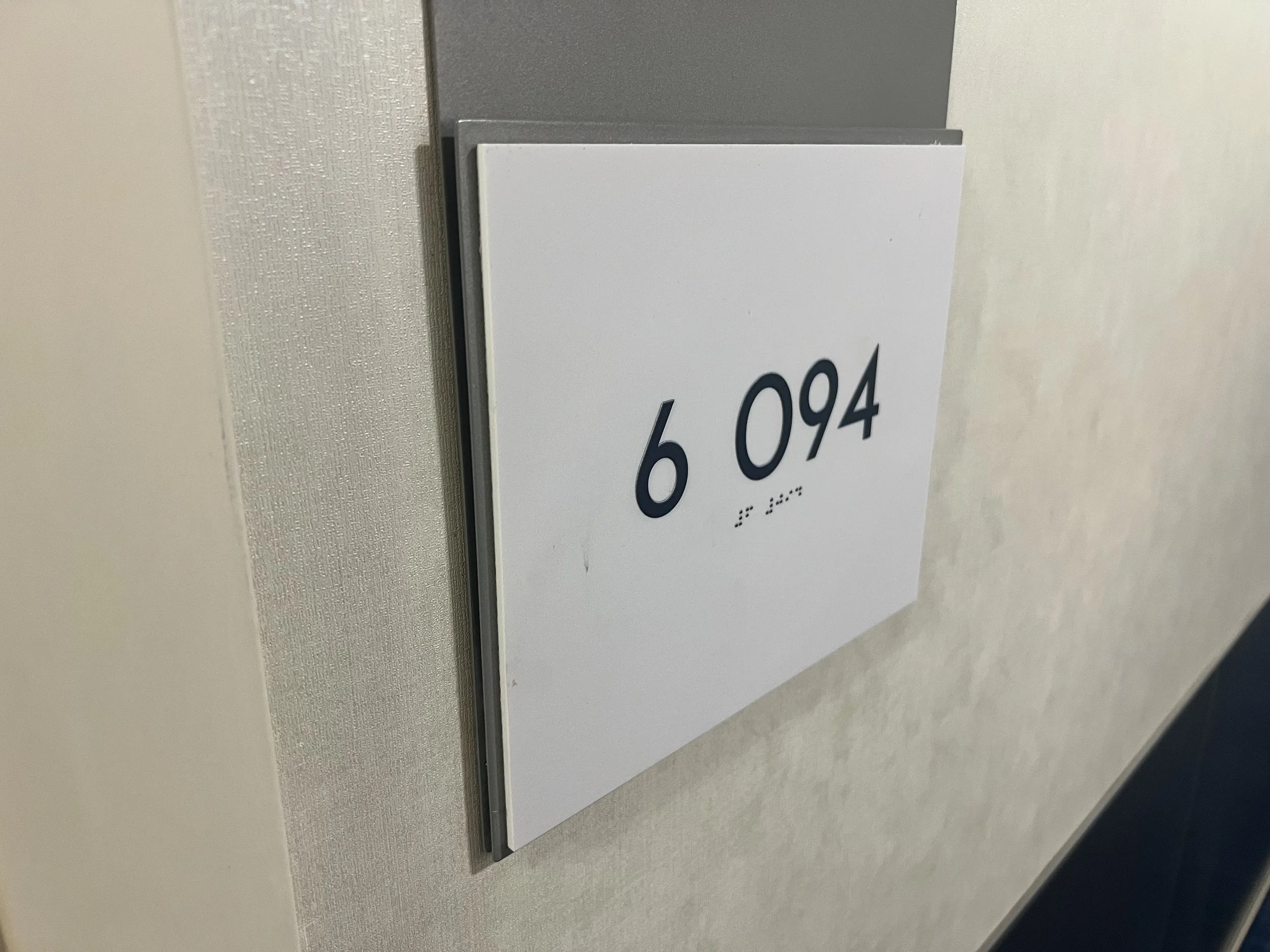 Here’s our door plaque, which had our stateroom number displayed both in the usual font, and also in braille.