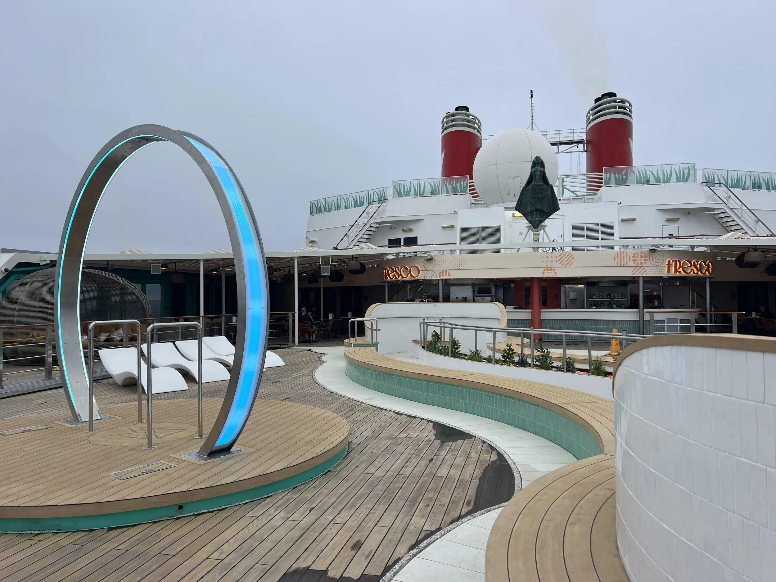 The Fresco Bar is open from 10am - 11pm, and the dining side is open from 12pm - 6pm. It’s important to note that this is weather permitting, so it’s best to check your ‘Daily Times’ once onboard to be sure.