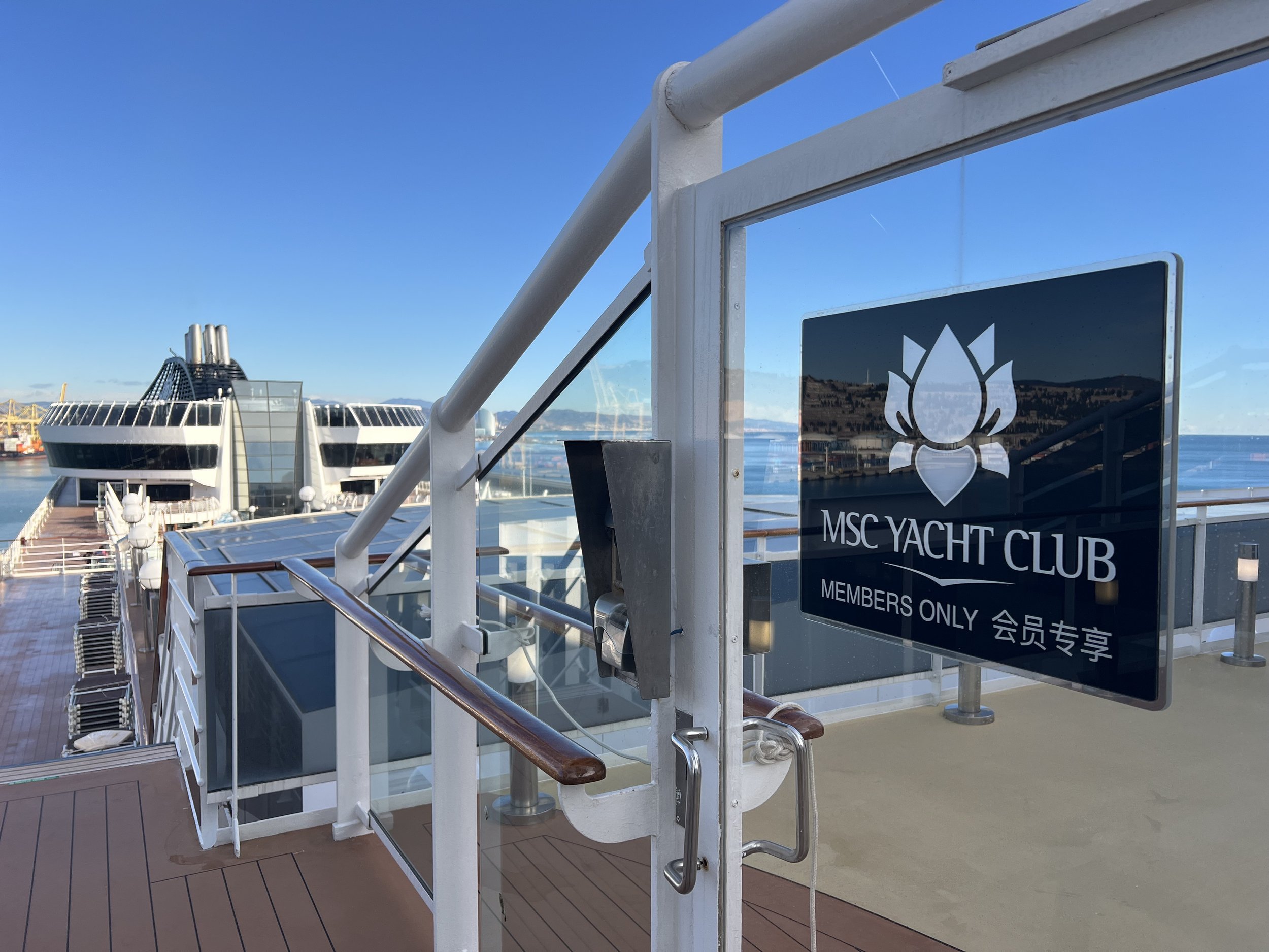MSC Yacht Club: 800 points (cruises under 6 days/5 nights), 1,500 points (cruises from 6 to 10 days/5 to 9 nights) or 2,000 points (cruises of over 10 days/9 nights)
