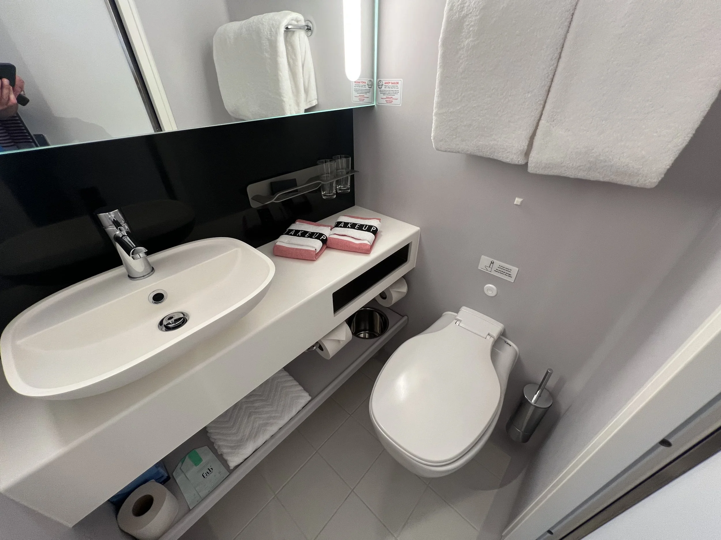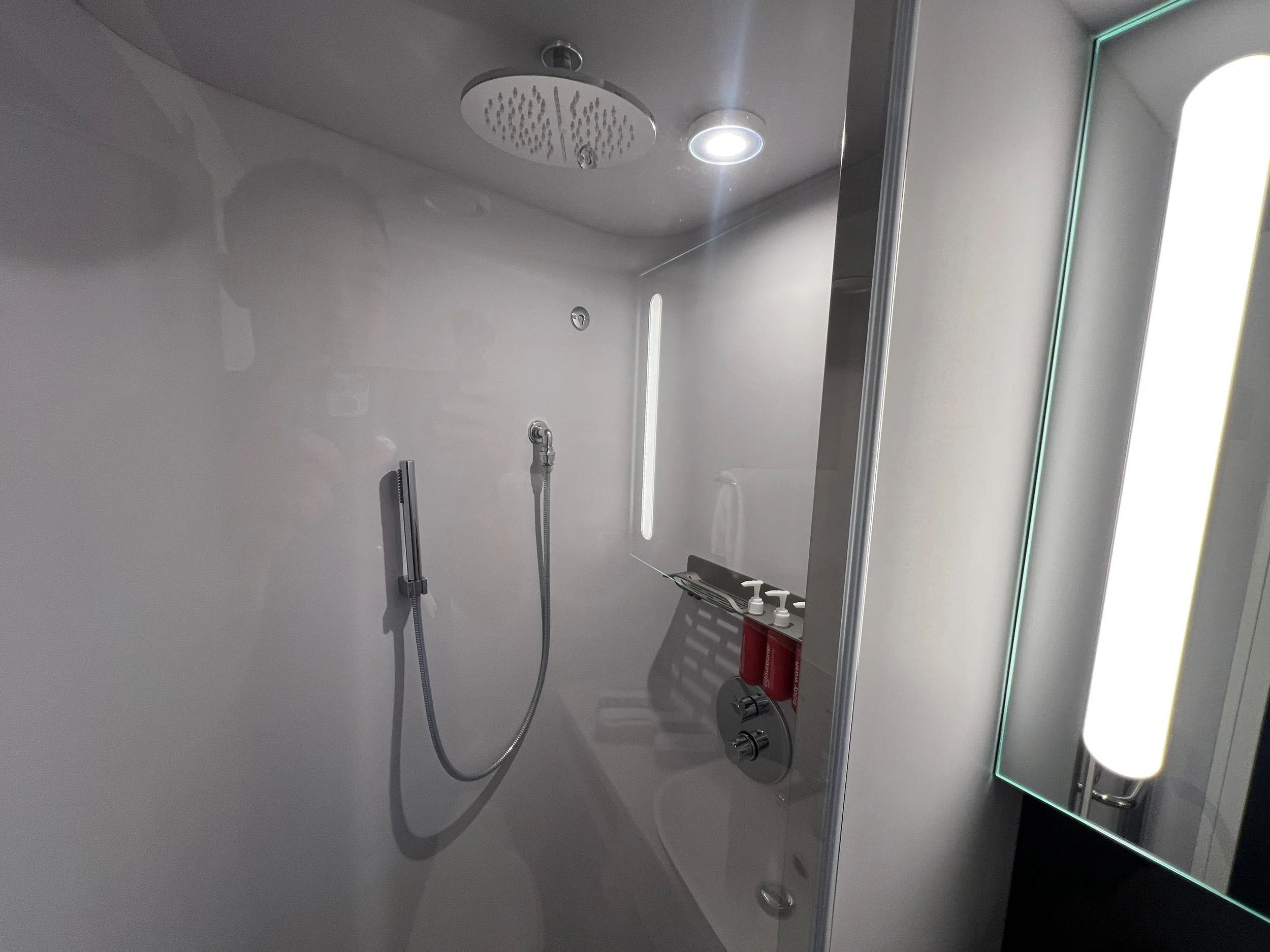 The bathroom in a ‘Sea Terrace: (Slightly) Smaller Balcony cabin is exactly the same as in its’ regular Sea Terrace alternative.