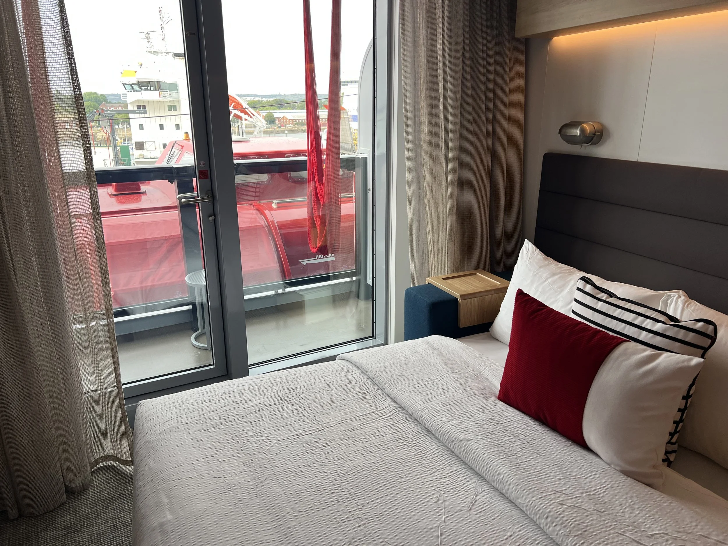 To help you visualise the difference between these pictures and a typical Sea Terrace cabin, here’s a photo from my Sea Terrace balcony on my last Virgin Voyages cruise.